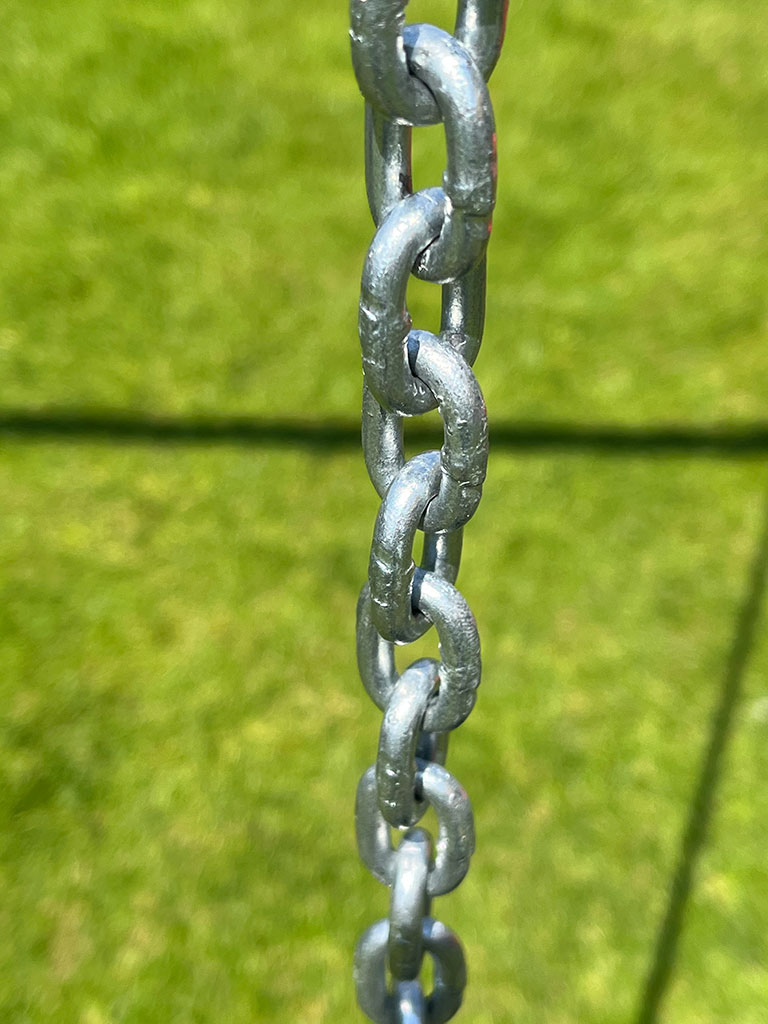 - Kettenlänge 1,0m ist für Schaukelgestellhöhe 2,5m geeignet